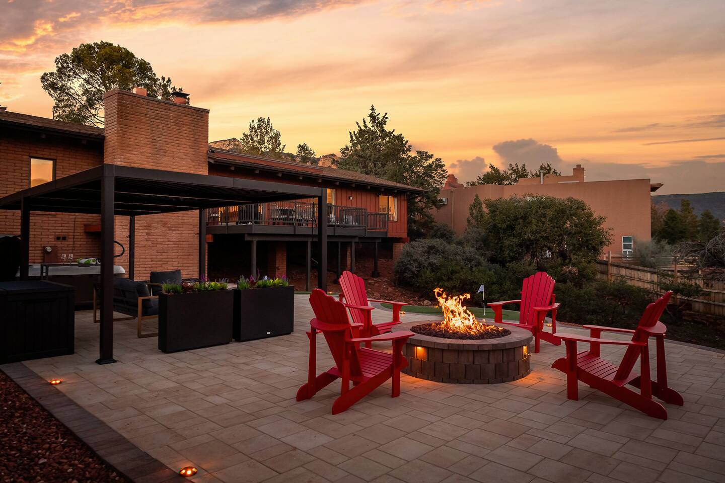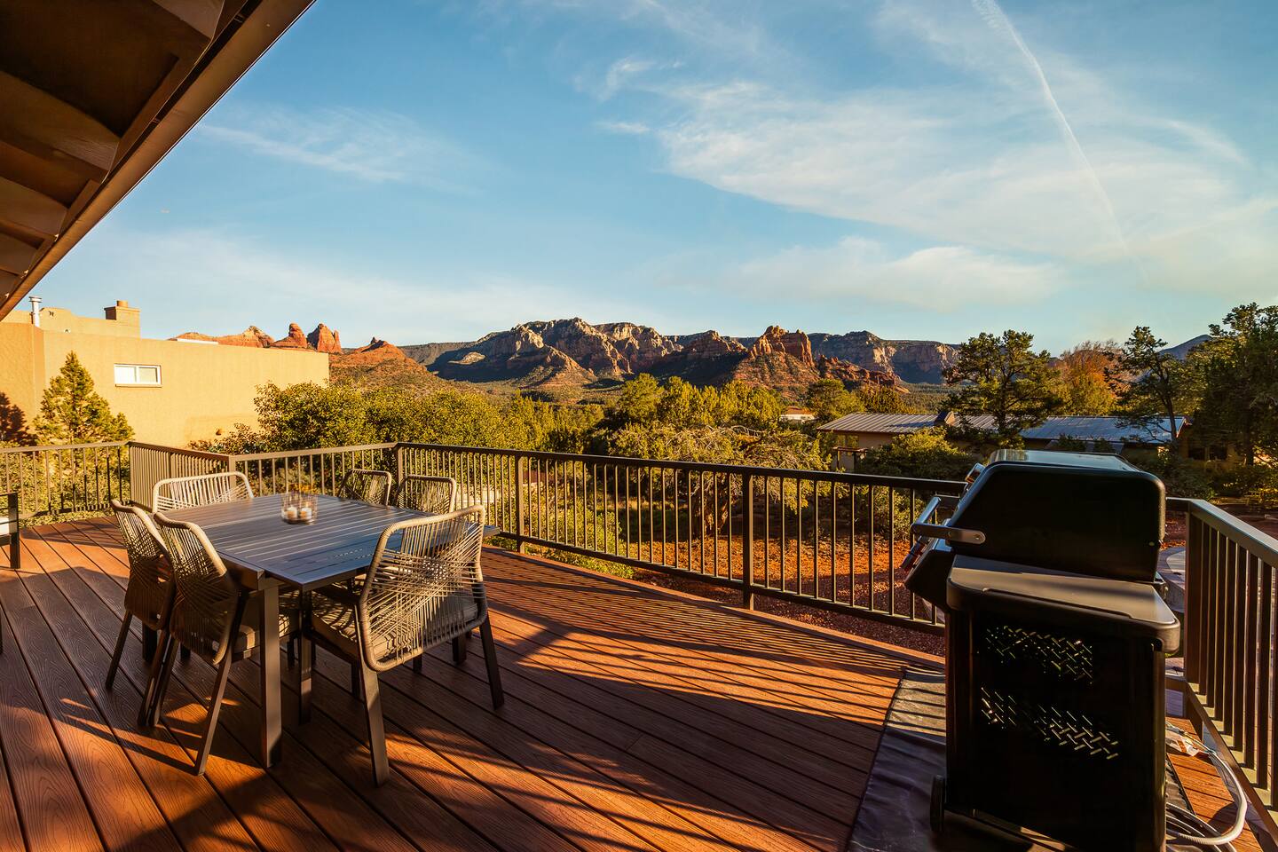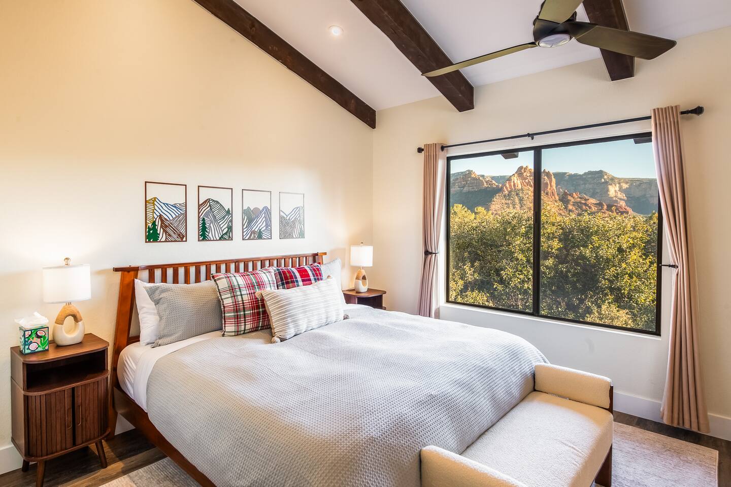 Welcome to your stylish Sedona basecamp perfect for 2 families with older kids! Enjoy jaw-dropping red rock views from nearly every room and the large deck—it's like living inside a postcard! Unwind in the hot tub after hiking, gather around the cozy electric fireplace, and enjoy our large patio with sweeping red rock views. A short walk to Uptown's shops and restaurants. The spacious, stylish decor and amenities ensure comfort in any weather. Come experience Sedona today!