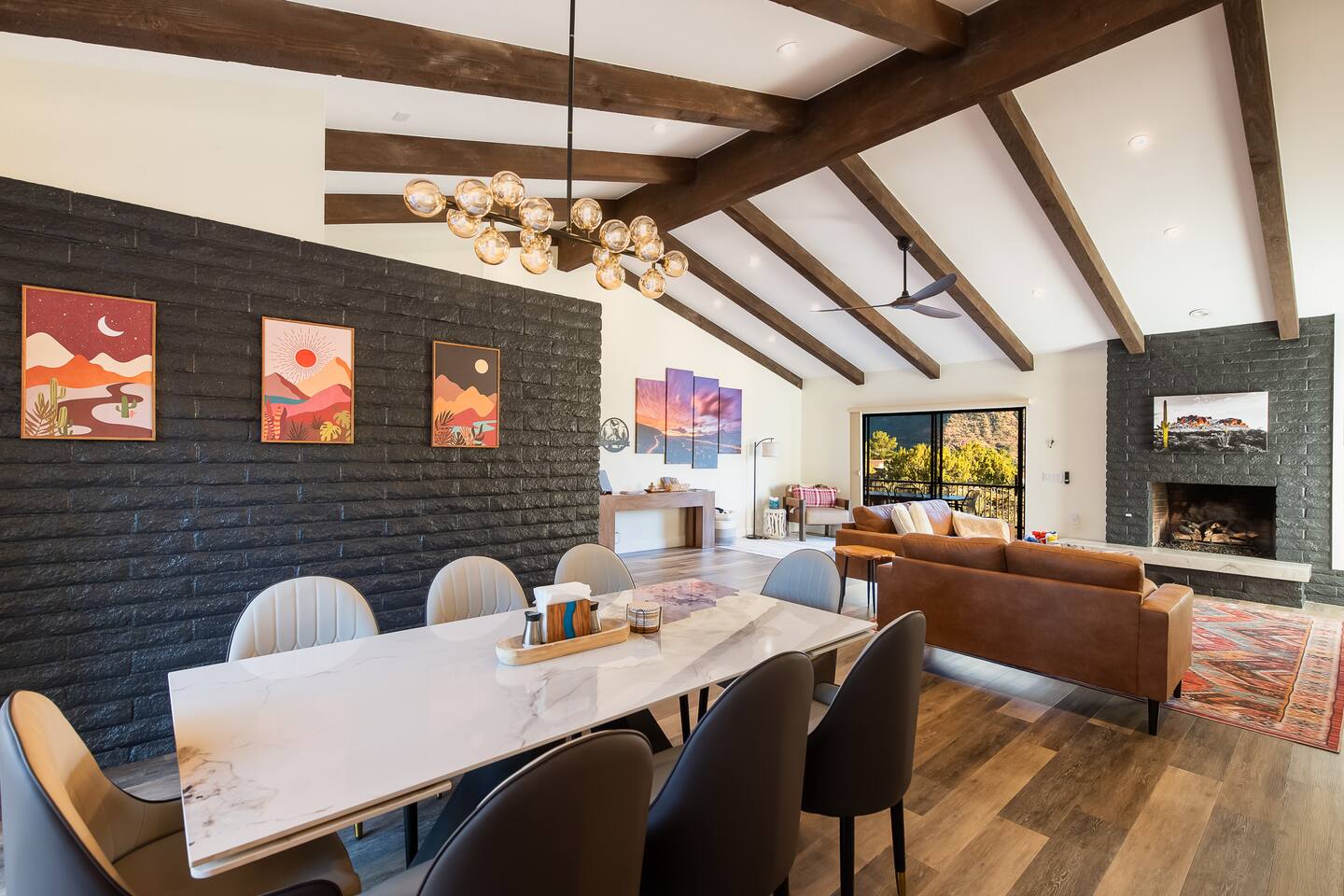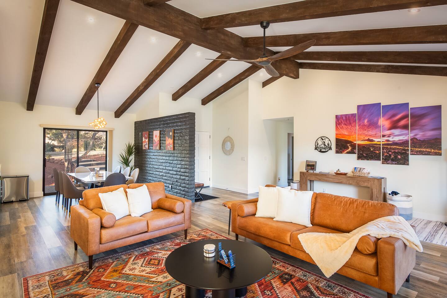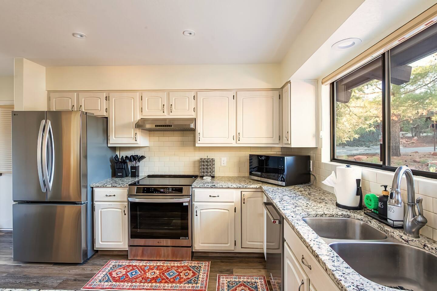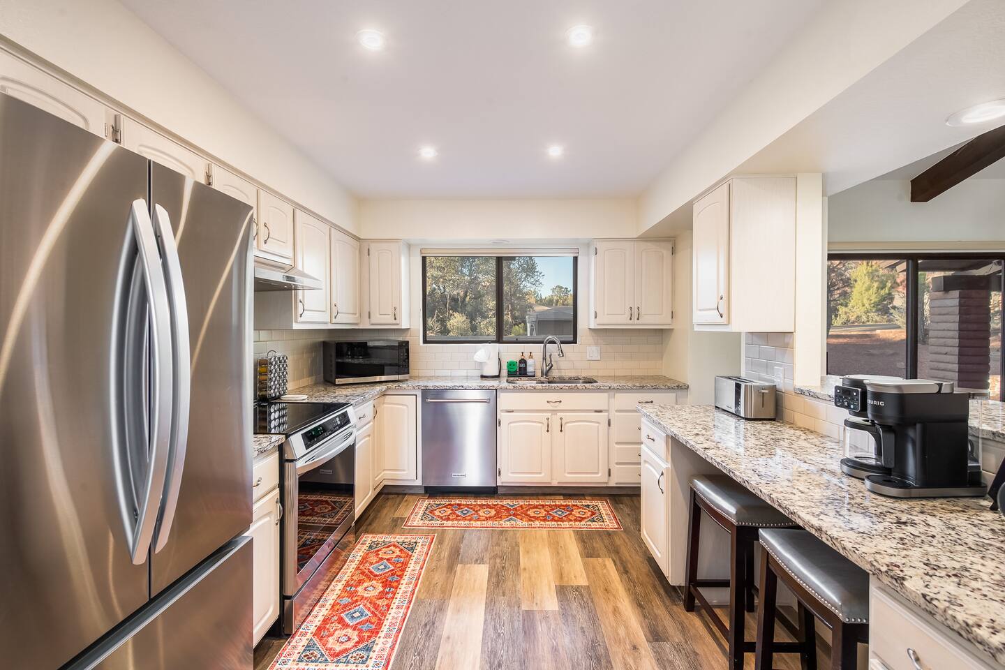 Welcome to your stylish Sedona basecamp perfect for 2 families with older kids! Enjoy jaw-dropping red rock views from nearly every room and the large deck—it's like living inside a postcard! Unwind in the hot tub after hiking, gather around the cozy electric fireplace, and enjoy our large patio with sweeping red rock views. A short walk to Uptown's shops and restaurants. The spacious, stylish decor and amenities ensure comfort in any weather. Come experience Sedona today!