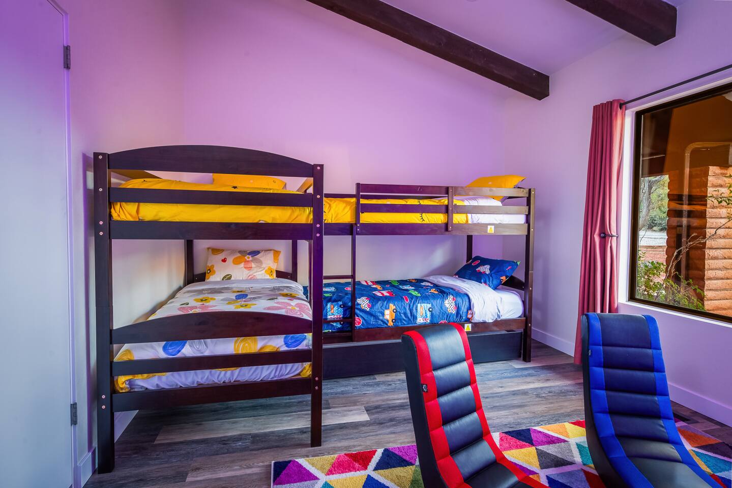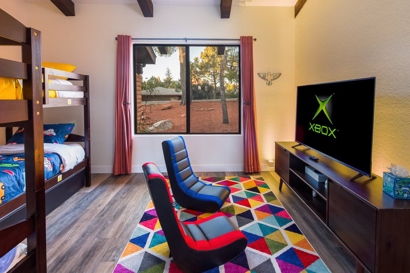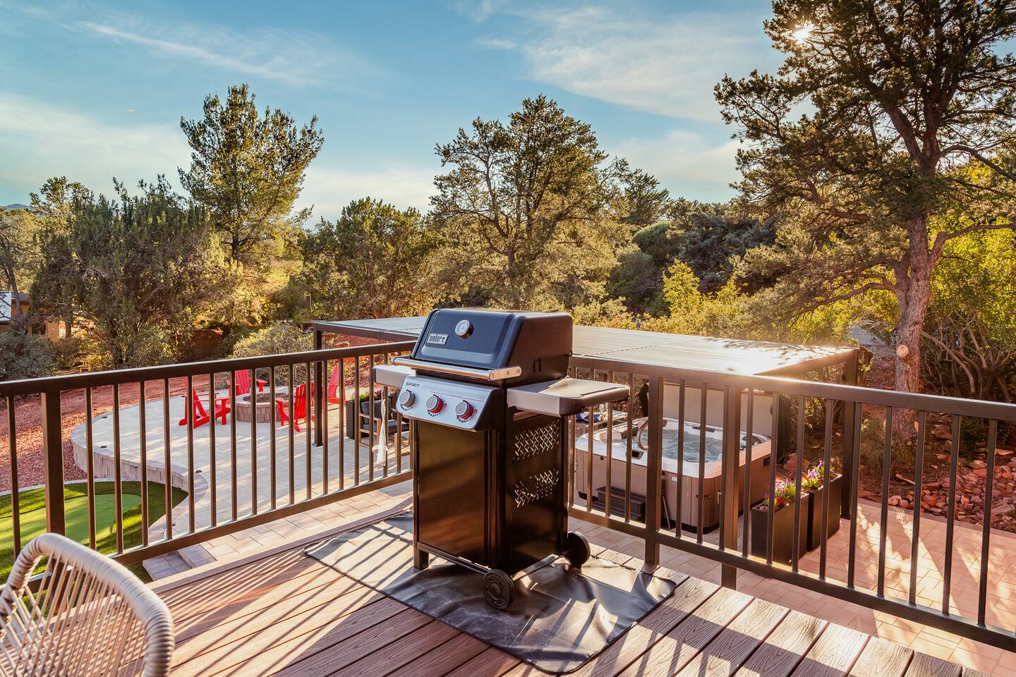 ** Inquire about seasonal discounts ** Welcome to SerenityView: Your Sedona Retreat Awaits! This stunning 3-bedroom, 2.5-bathroom home in Uptown Sedona offers premium comfort, luxury, and an unbeatable location. Perfect for up to 9 guests (ideal for 4 adults and 5 children, or maximum 8 adults), this is your family-friendly home base for an unforgettable getaway. Best of all? You're just a short walk to Uptown for unique art galleries, specialty shops, and excellent dining! ** Breathtaking Red Rock Views Everywhere ** Prepare to be captivated—sweeping red rock views from almost every room, the expansive large deck, and patio bring Sedona's magic right to you. Step inside to a spacious home with high ceilings, clean, bright Southwestern decor, and a cozy electric fireplace that instantly welcomes you. ** Outdoor Paradise with Expansive Patio ** The outdoor area is where memories are made! Our expansive patio features a soothing hot tub with panoramic red rock views, warm firepit, additional seating areas, and a fun mini golf course for friendly putting competitions. Fire up the Weber grill for dinner on the large deck overlooking breathtaking scenery—the ultimate Sedona experience. ** Modern Amenities & Convenience ** Enjoy free WiFi throughout, keyless locks for easy check-in, and a whole-house air purifier for your health and peace of mind. The environment here is inherently spiritual and meditative, allowing you to truly unwind. ** Entertainment for All Weather** Rainy day? No problem! Keep the fun going indoors with our Xbox Series S gaming console, full-size ping pong table, and foosball table for epic tournaments. Whether you're gaming, rallying, or competing in table soccer, there's plenty to keep everyone entertained when you're not exploring the red rocks. ** Adventure Made Easy ** We provide an America the Beautiful National Parks pass to help you skip daily parking fees at local trailheads and National Forest sites. Inside, enjoy multiple entertainment options including Xbox Series S, ping pong, and foosball for friendly competition. ** Chef-Ready Kitchen & Cozy Spaces ** Culinary enthusiasts will love the fully stocked kitchen with dedicated coffee bar to start every morning right. Need quiet time? Our cozy reading nook awaits. Every bedroom features a 4K smart TV for ultimate comfort. SerenityView isn't just a place to stay—it's your luxurious, picture-perfect home base with premium comfort for an unforgettable Sedona adventure! Sedona Lic #033230; TPT #21627900
